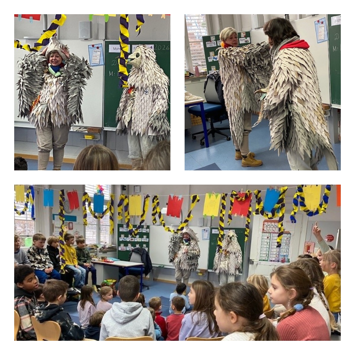 Zwei "Alaböcke" besuchten unsere Schule und berichteten über Brauchtum und Geschichte des Fasnachtsvereins und zeigten ihr schönes "Häs".